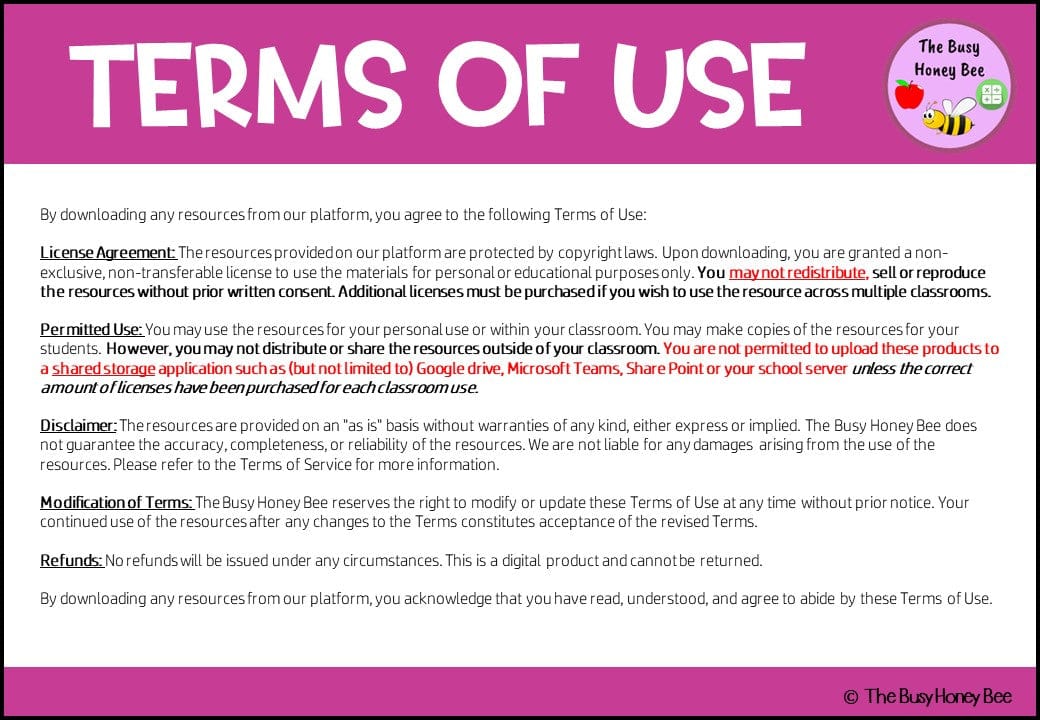 • This product is protected by Copyright Laws. The design, concept, and layout of this product is strictly the intellectual property of The Busy Honey Bee. This is for personal or single-classroom use only. By purchasing or downloading this resource, you agree to the following terms: