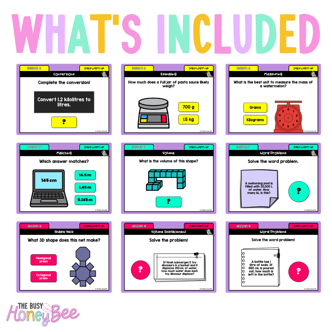 These Maths Daily Warm-Ups have been designed to directly complement the learning concepts explored throughout the NSW Multi Age 3-6 Year A Maths Sample Units for the ENTIRE YEAR!