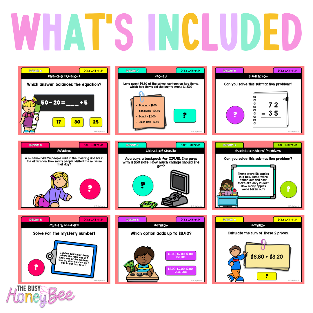 These Maths Daily Warm-Ups have been designed to directly complement the learning concepts explored throughout the NSW Stage 2 Year A Maths Sample Units for the ENTIRE YEAR!