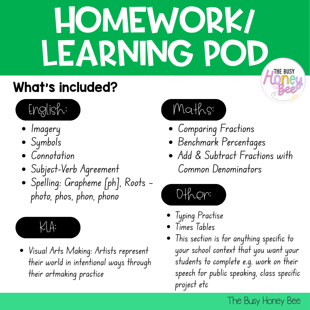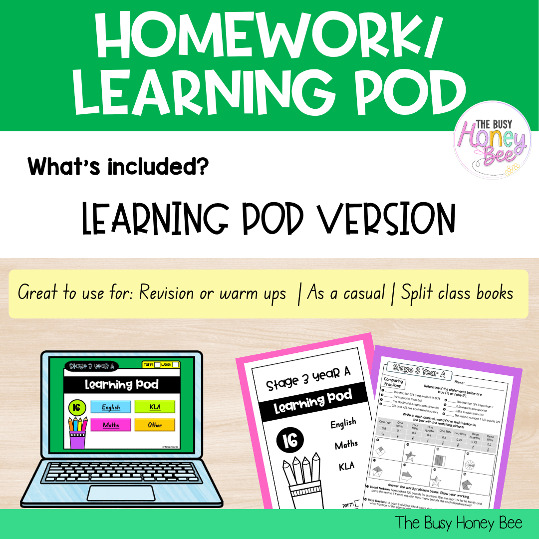 Homework/Learning Pods are designed for versatility. They can be used as a regular homework assignment with a fortnightly rotation, added to your Google Classroom, or printed and sent home. They are perfect for extension activities, fast finisher tasks, or as part of your group rotations in class. The possibilities are endless, ensuring that you can adapt them to meet your students' needs effortlessly.